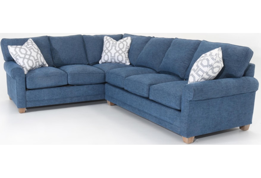 Rowe My Style I Customizable Sectional Sofa With Rolled Arms Tapered Legs And Box Style Cushions Reeds Furniture Sectional Sofas